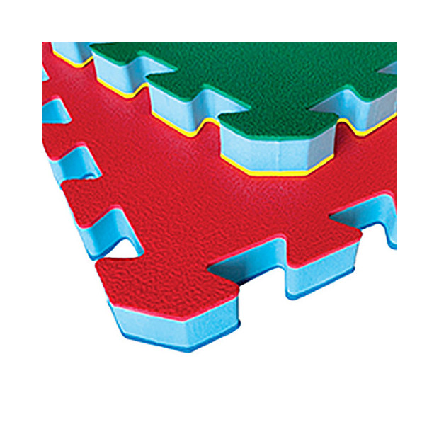 Morbide mattonelle in Eva combinabili come puzzle per creare tappeti adattabili a superfici di varie dimensioni. Le mattonelle sono leggere, insonorizzanti, e termoisolanti. Bordi inclusi.