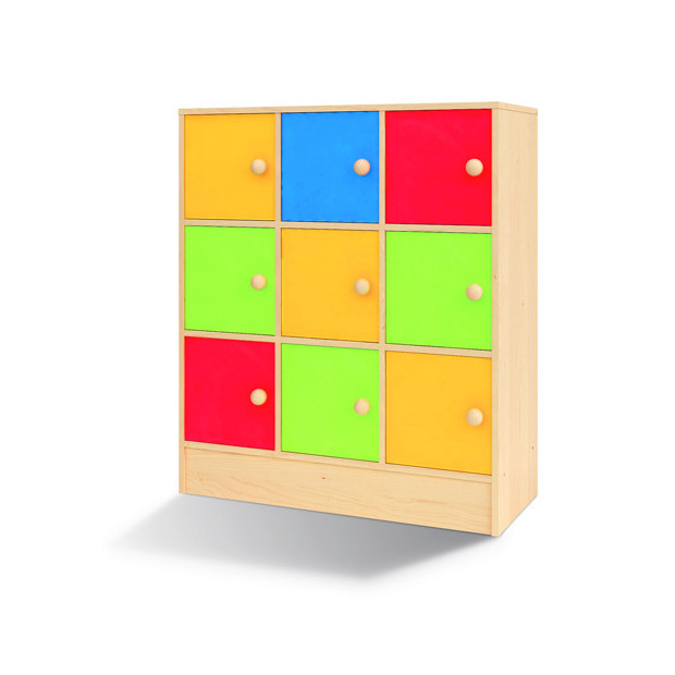 Art. 12115 mobile in legno “BRIO” cm.99 x 35 x 112h (9 armadietti con ante colorate).