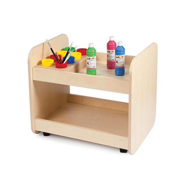 Carrelli con ruote in legno conglomerato nobilitato con ripiano in formica atossica.