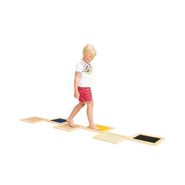 Art. 10387 percorso sensoriale in legno composto da 6 tavole cm.35.5x30.5x2h con differenti texture.