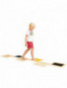 Percorso sensoriale in legno. Ogni pedana è ricoperta da un materiale diverso in modo da stimolare la percezione sensoriale del bambino mentre la forma è quella caratteristica del puzzle che permette di realizzare percorsi sempre nuovi e differenti.