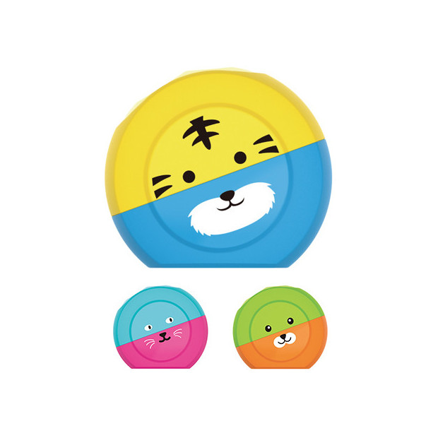 Temperamatite in blister adatto per matite di ø mm.8 e 11. Design ergonomico con simpatiche e colorate varianti. Contenitore per trucioli.