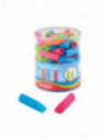 Gomma per cancellare e cappuccio per proteggere la punta della matita. Non contiene PVC. Disponibile in vari colori. In espositore da 72 pezzi.