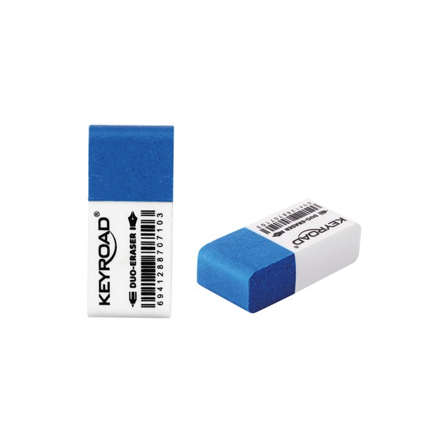 Gomme DUO bianco/blu: un lato per matite, un lato per inchiostri.Non contengono PVC.Dimensione: mm. 39 x 17,6 x 12.Display da 30 pezzi.