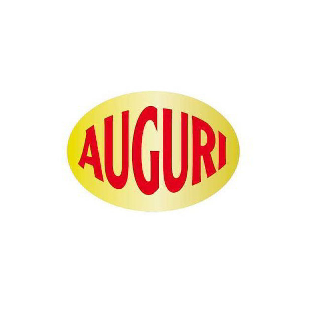 Rotolo 200 etichette ovali a specchio disponibili con la scritta: Auguri oppure Buone Feste. Misure cm.2.2x3.5