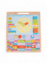 Art. BJ592 tavola magnetica del tempo (in legno) Un ottimo modo per insegnare ai bambini i vari concetti relativi al tempo: orario, diverse stagioni, giorni/date, mesi/anni La lavagna dispone di un quadrante colorato con lancette mobili, orologi a 12 e 24 ore e magneti che indicano stagioni, giorni ecc. (in lingua inglese). Composto da 73 elementi gioco.