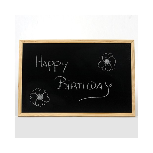 Lavagna nera scrivibile e cancellabile con cornice in legno. Nella confezione sono inclusi gesso e ganci di fissaggio.