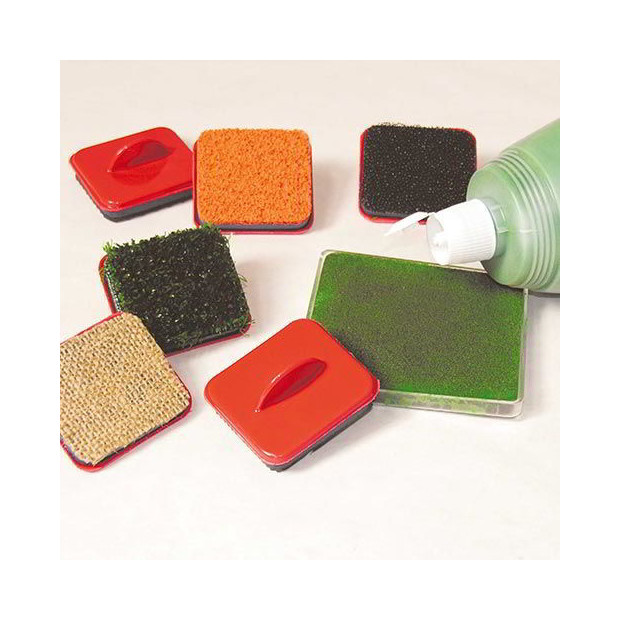 Set 1 cuscinetto + 6 tamponi con impugnatura. Dimensione cuscinetto cm.10x11, dimensione tampone cm. 6x6.5