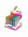 Colla glitter colori coprenti metal in pratici espositori da banco. Disponibili in diversi formati.