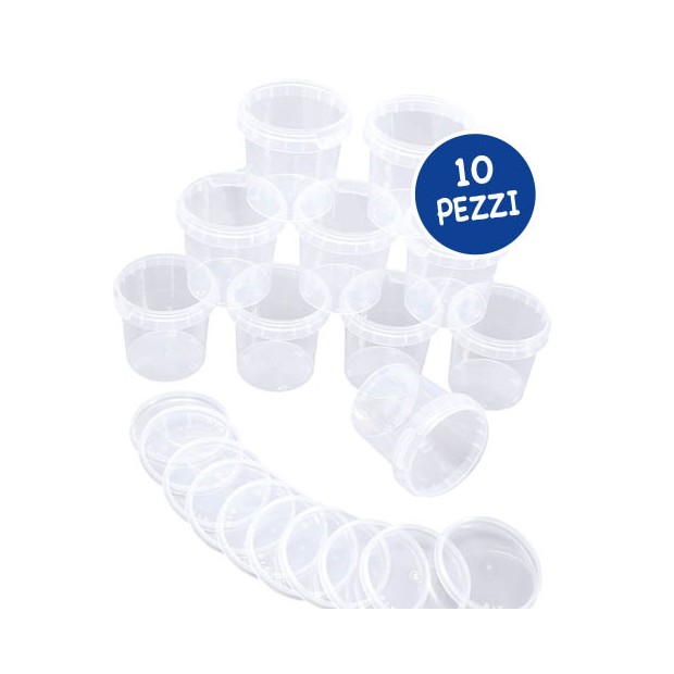 Set 10 barattoli da ml.150 con coperchio a pressione.