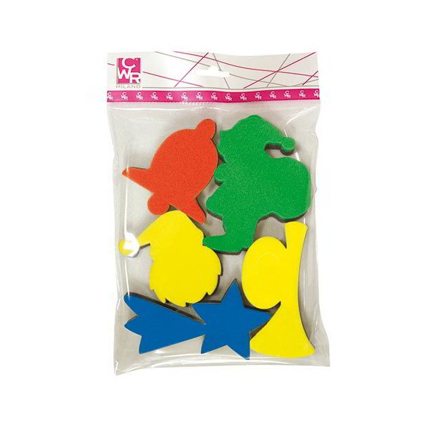 Timbri in spugna con impugnatura rigida. Impugnatura mm. 7. Un modo semplice e veloce per realizzare simpatiche decorazioni a tampone su superfici con colori a tempera, acrilici, stoffa.