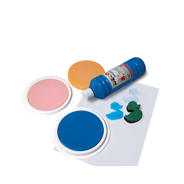Set due cuscinetti per tempera diametro cm.16 più due spugne di ricambio. Ideali per timbri e colori a dita.