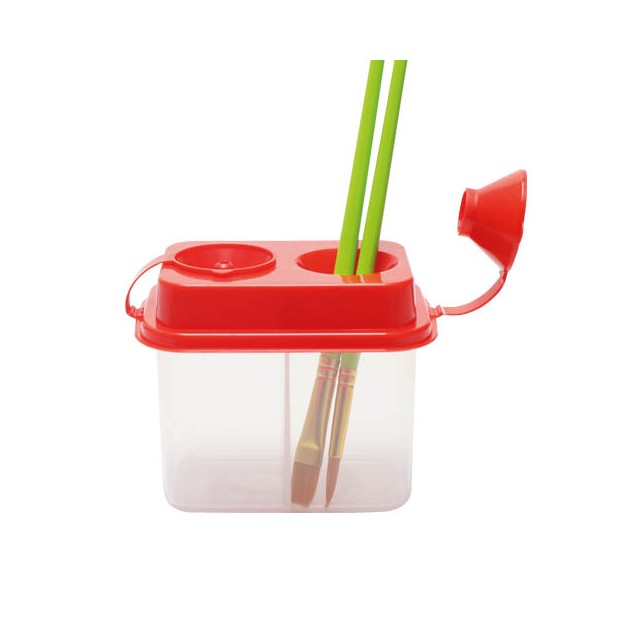 Lavapennelli a due scomparti con coperchio antirovescio. Capacità: 2 x 170 ml.