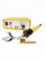 Art. 07491Set Pirografia a temperatura fissa. Contiene: Base, manopola, 3 anse, libretto istruzioni per l’uso, libretto “Corso accelerato pirografia”, spazzola di pulizia Specifiche tecniche: a. dimensioni base: cm.10 x 6,6 x 5,4 h b. 220-240 V / 50-60 Hz c. basso voltaggio uscita 1,0 V d. Potenza 20 Watt e. temperatura approssimativa: 550-600°C (dipende dall’ansa utilizzata) f. indicatore luminoso acceso/spento g. funzionamento a basso voltaggio