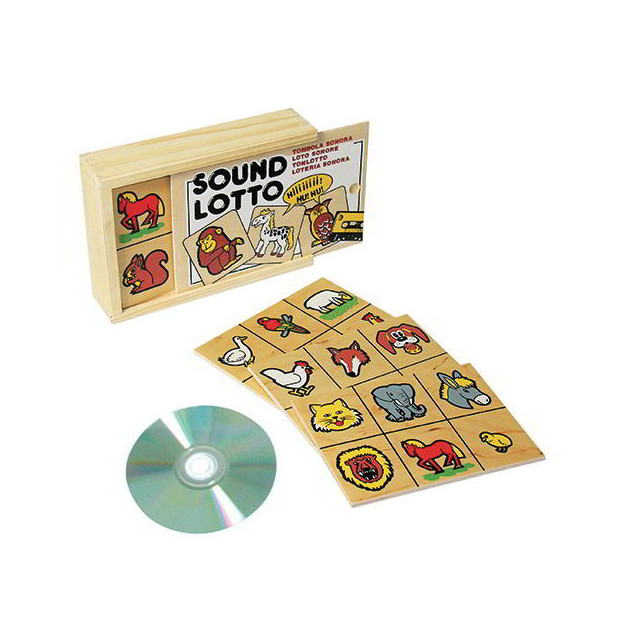 Art.04744 Lotto sonoro. Scatola in legno cm.28 x 39 completa di 4 maxi tessere e 1 CD