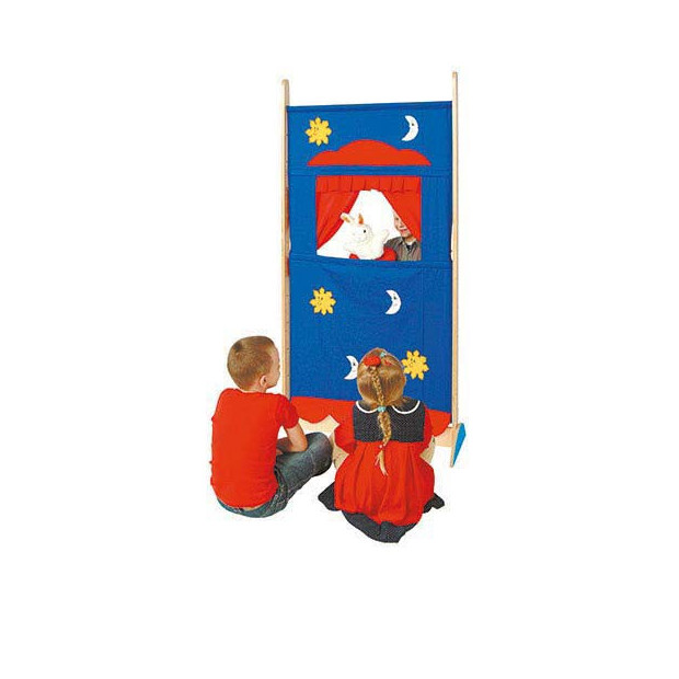 Mobile in legno (teatrino: cm.87 x 168 h) completo di sipario e tende