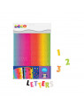 Lettere e numeri in cartone in set da 10 fogli per un totale di 100 pezzi.