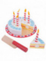 Il set misura cm.18x10 H ed include 6 fette di torta, 6 candeline, un vassoio e un coltello. Tutto realizzato in legno di altissima qualità.