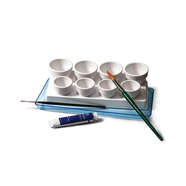Vasetti in materiale acrilico 8 pezzi, più tavolozza e vassoio.